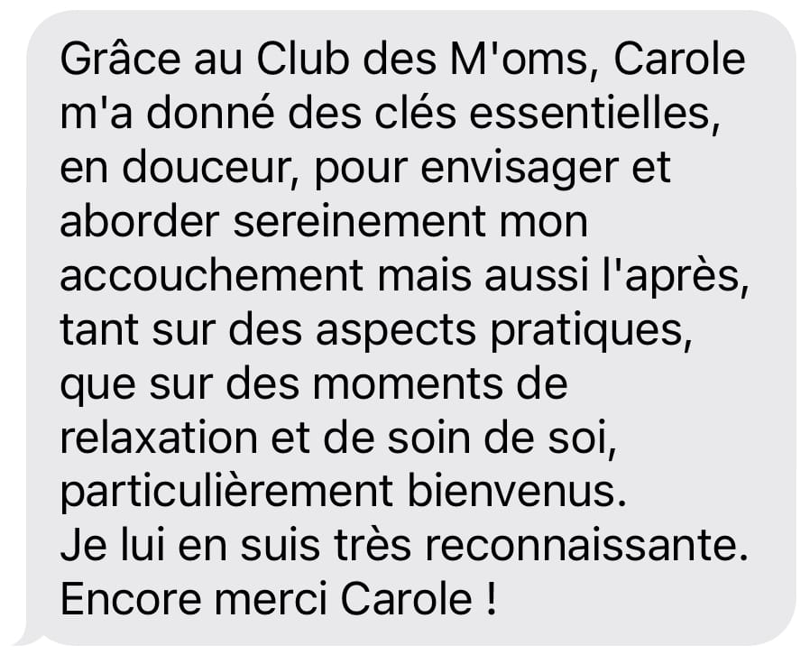 Le Club des M'OMs n'offre pas de cours de préparation à l’accouchement stricto sensu, seules les sages-femmes sont légalement habilitées à proposer une préparation à l’accouchement.