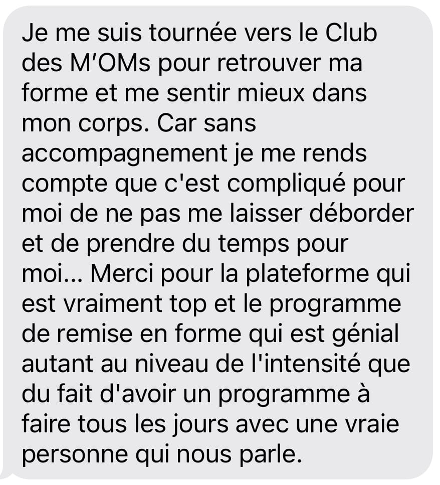Et puis parce que je n’ai aucun doute que tu aimeras tellement le Club des M’OMs, qu’une fois que tu auras retrouvé ton énergie et ton plaisir de vivre ta maternité… tu voudras continuer à avancer à mes côtés :-)